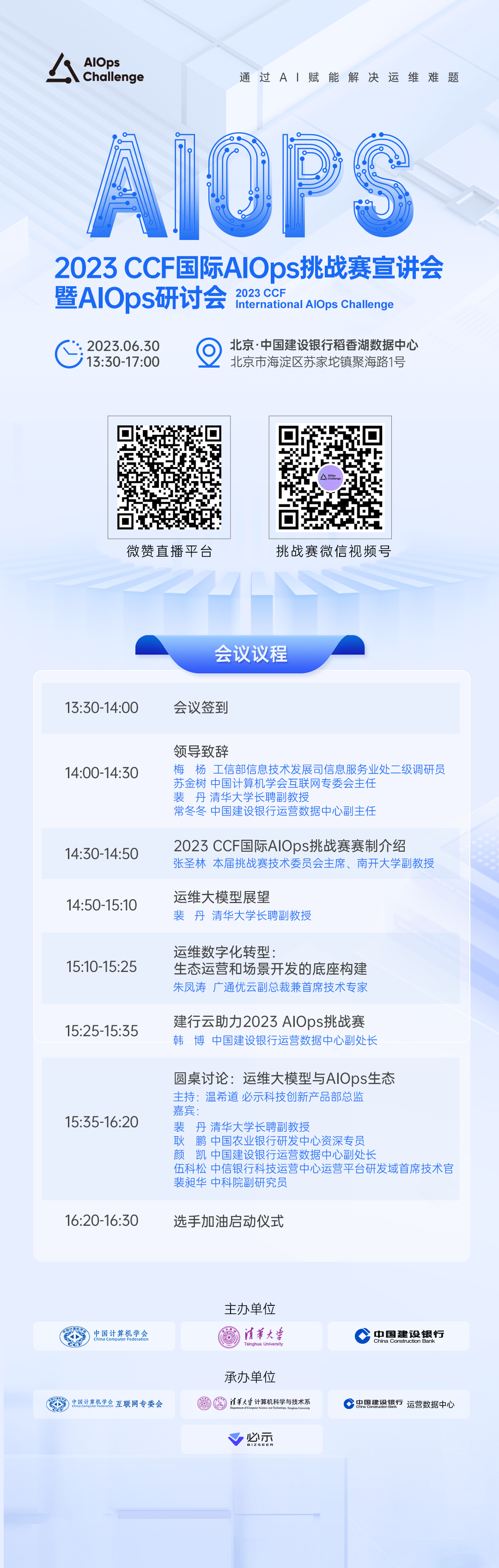 2023 CCF国际AIOps挑战赛宣讲会暨AIOps研讨会议程