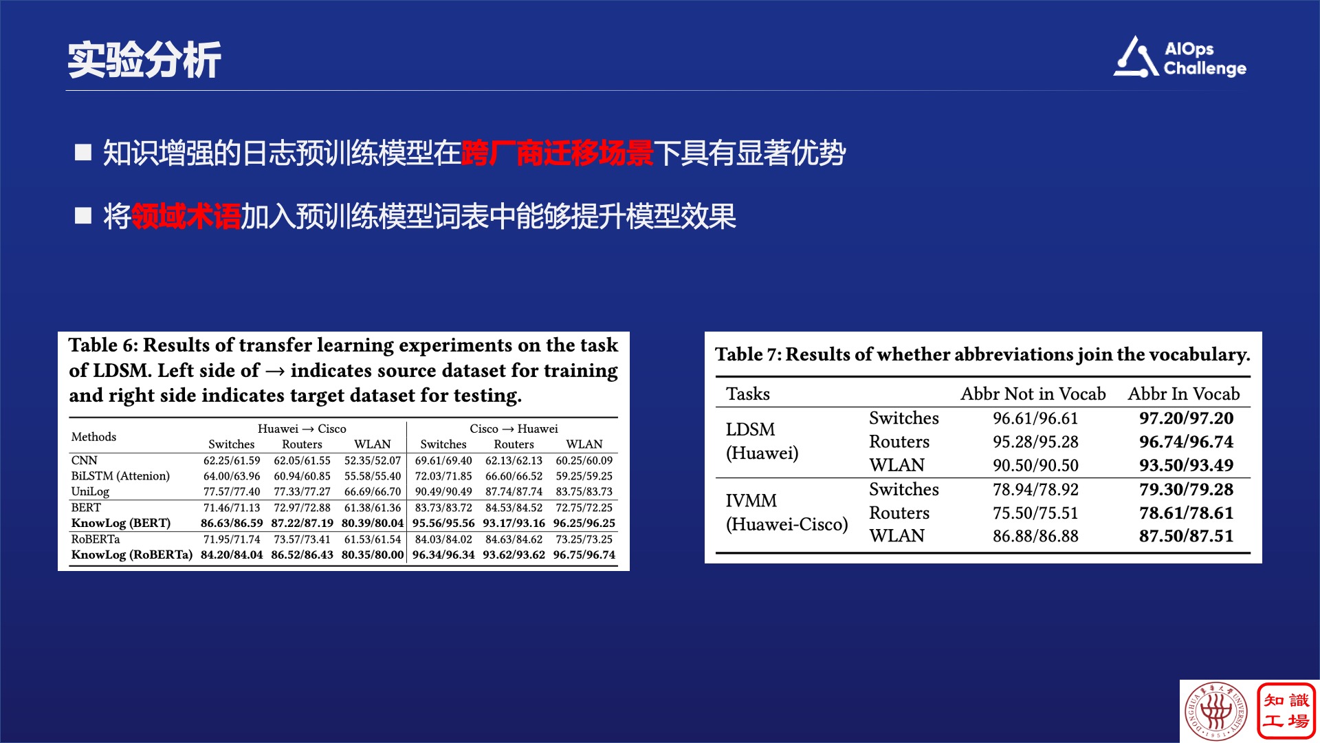 另外,在跨厂商迁移方面,我们用华为的日志训练完应用到华三日志上面,或者用华三日志训练完去用到思科日志上面,发现都有非常好的效果。