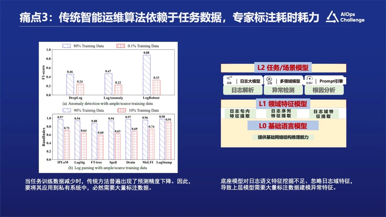 痛点三:传统智能运维算法依赖于任务数据,专家标注耗时耗力。前面也有专家介绍过标注数据其实是比较少的,那么我们该如何解决依赖人力标注的问题?
