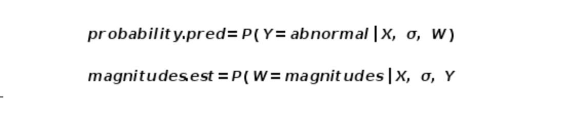 根据构建观测值X,涨幅W,与异常性Y的概率估计关系,以此计算阈值的边界,从而将指标特性加入模型的阈值估计中。